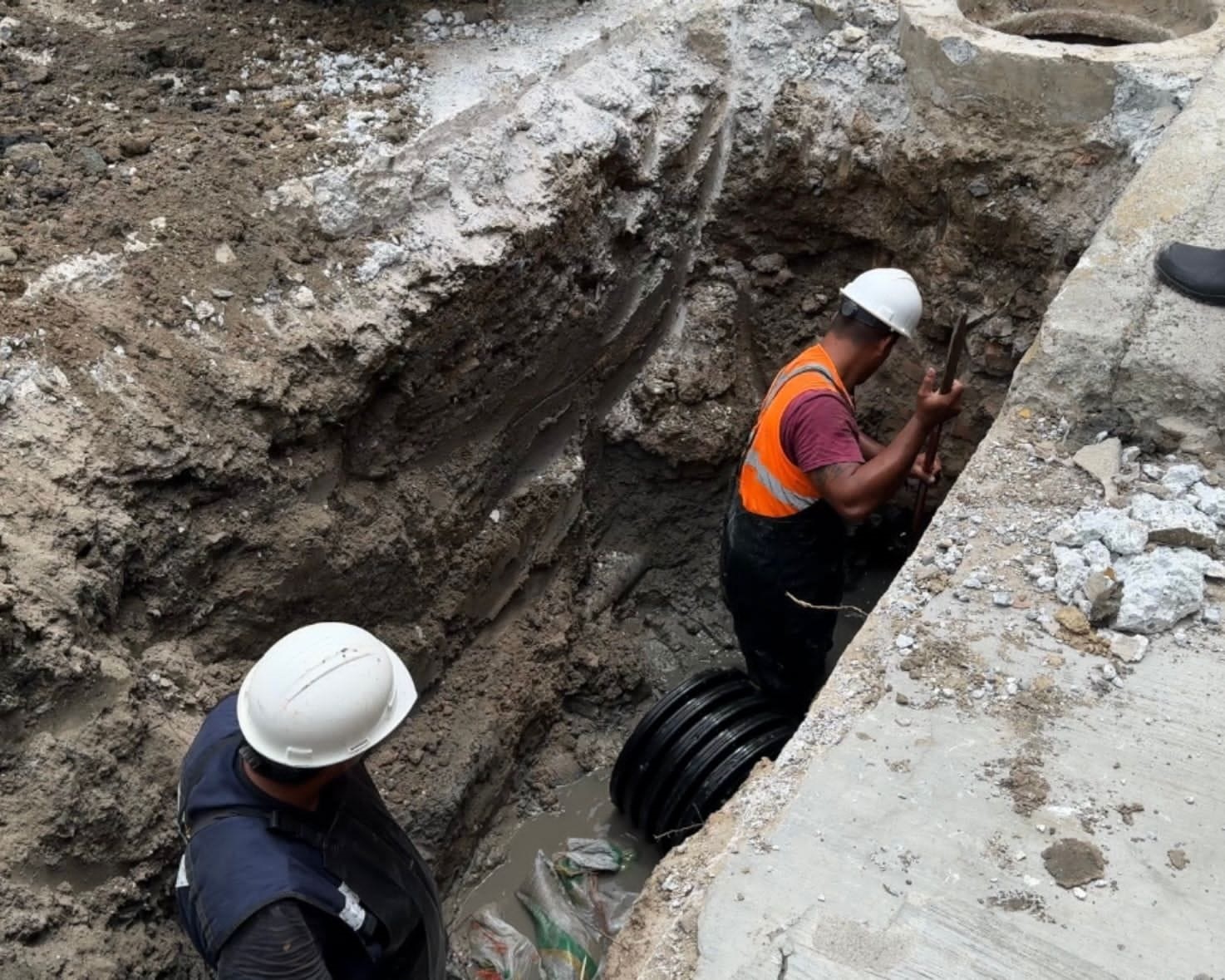 Tampico, Tamaulipas.- Continúa COMAPA SUR con los trabajos de reconfiguración de un colector en la colonia Ampliación Niños Héroes, con…